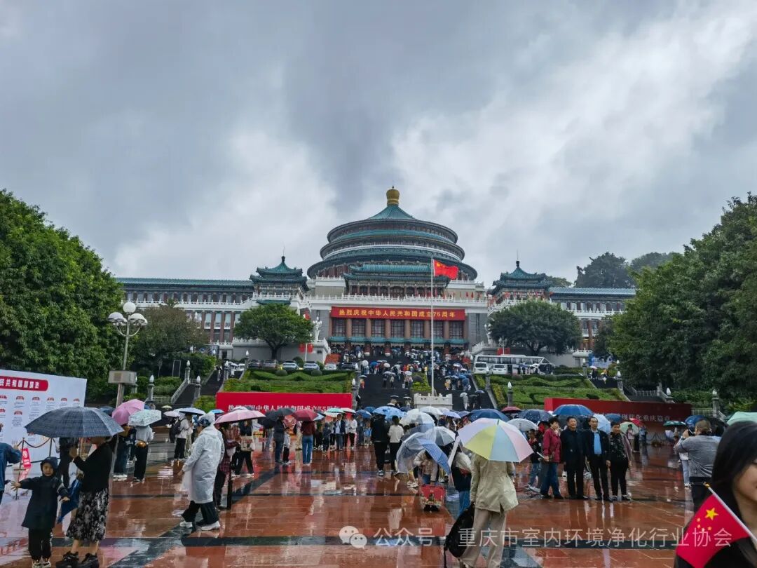 在中华人民共和国成立 75 周年这个光辉的时刻,重庆市室内环境净化行业协会党支部书记涂健发带领协会部分党员及负责人,庄重地步入重庆市大礼堂,参与这场盛大的庆祝活动。他们身着整洁的服装,胸前的党徽熠熠生辉,以坚定的步伐和高昂的精神面貌,展现出净化行业人的风采与担当。