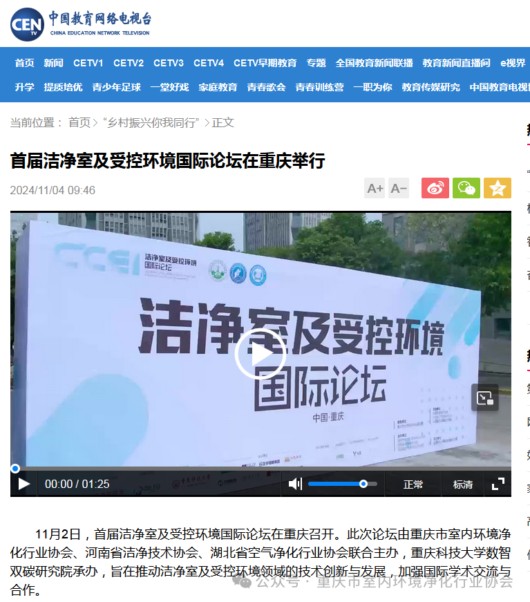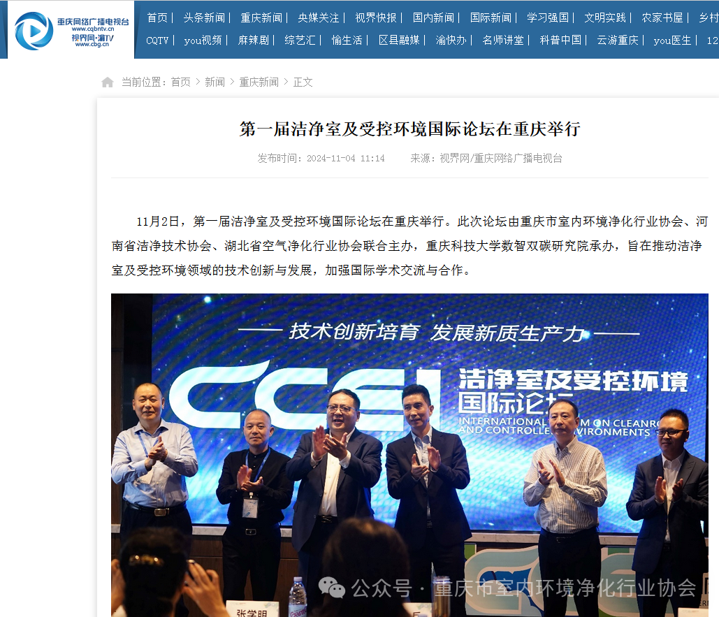 此次论坛受到了各大媒体和平台的广泛关注。中国教育网络电视台、央视频、中国网、新华网、中华工商时报、重庆市电视台、重庆日报、华龙网、搜狐网、上游新闻重庆电视台等媒体纷纷对论坛进行了报道。本次论坛为洁净室及受控环境领域的技术创新与发展搭建了一个重要的交流平台,对激发新兴产业发展活力、完善产业生态具有积极意义。